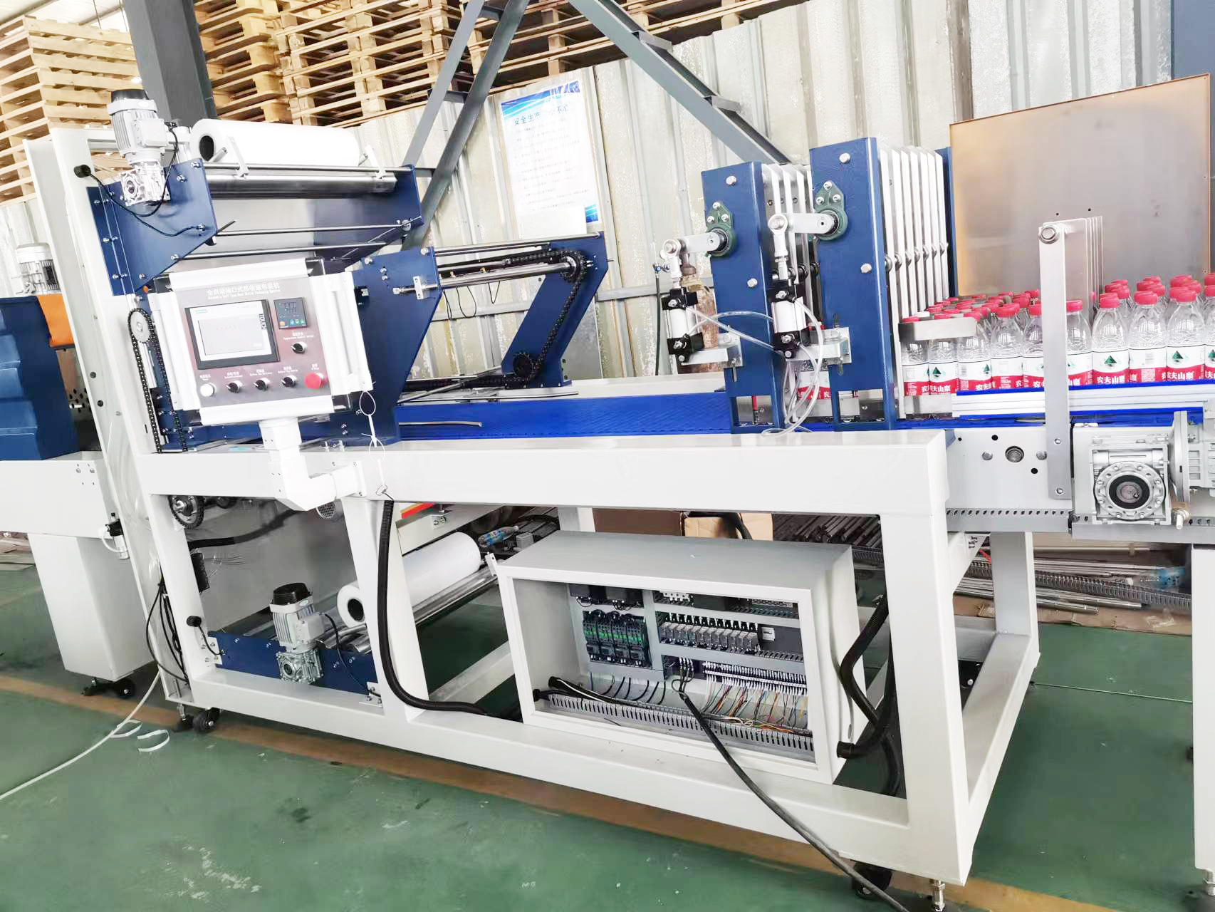 热收缩包装机是基于包装膜受热收缩的特性而设计制造的高效率、连续作业的全新包装设备,它可将单个PET饮料瓶或其它类似物品自动排列、集合成组、然后用收缩膜进行包裹,后经加热收缩、冷却定型形成集合包装,包装后的产品捆绑牢固,外型规整、美观,开启方便。因此被广泛应用于食品、药品、化工及其它轻工产品等行业。
